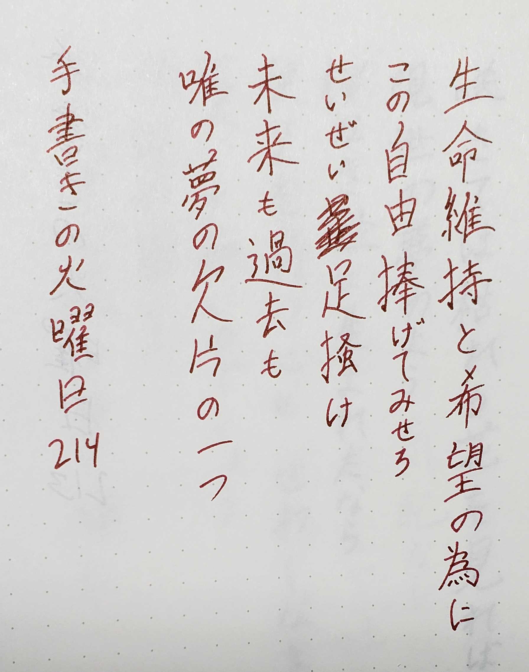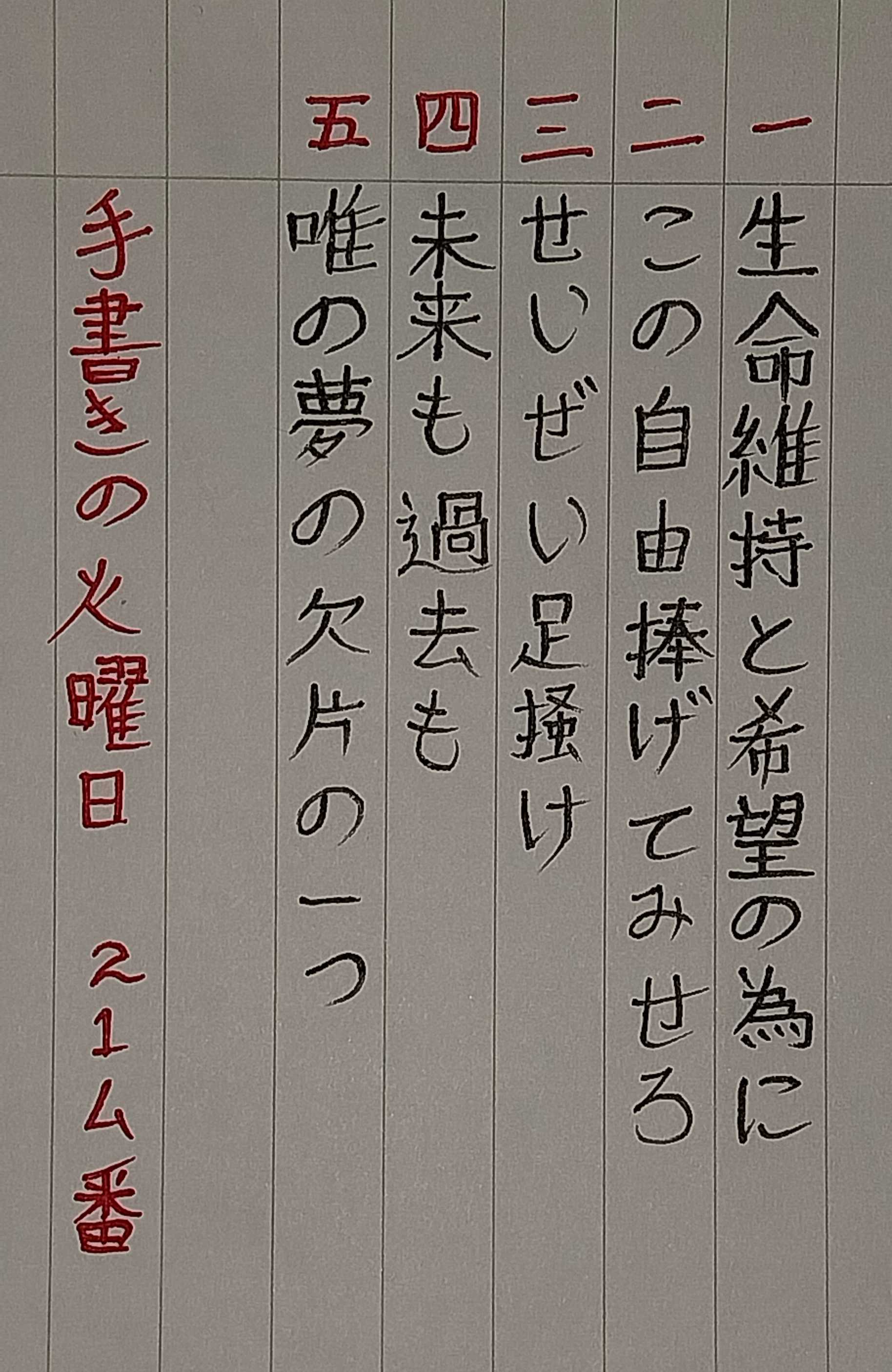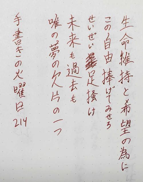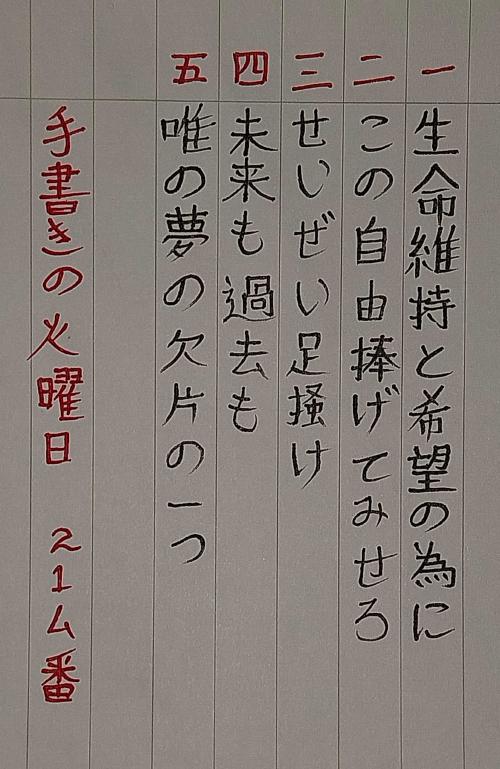 生(せい)命(めい)維(い)持(じ)と希(き)望(ぼう)の為(ため)に