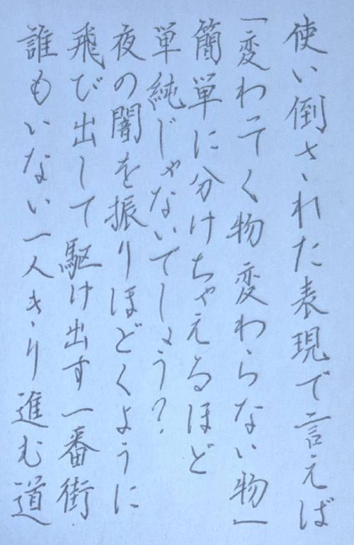 「変(か)わってく物(もの) 変(か)わらない物(もの)」
