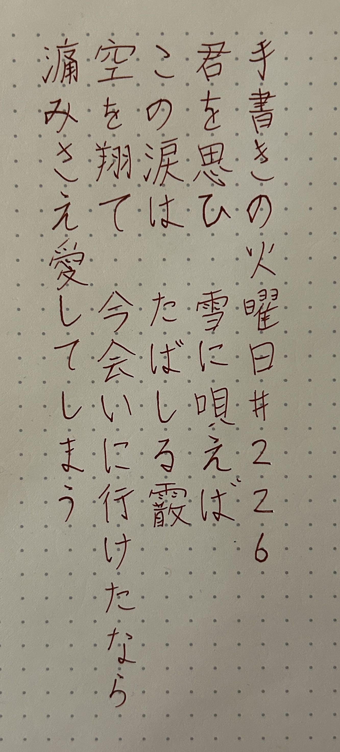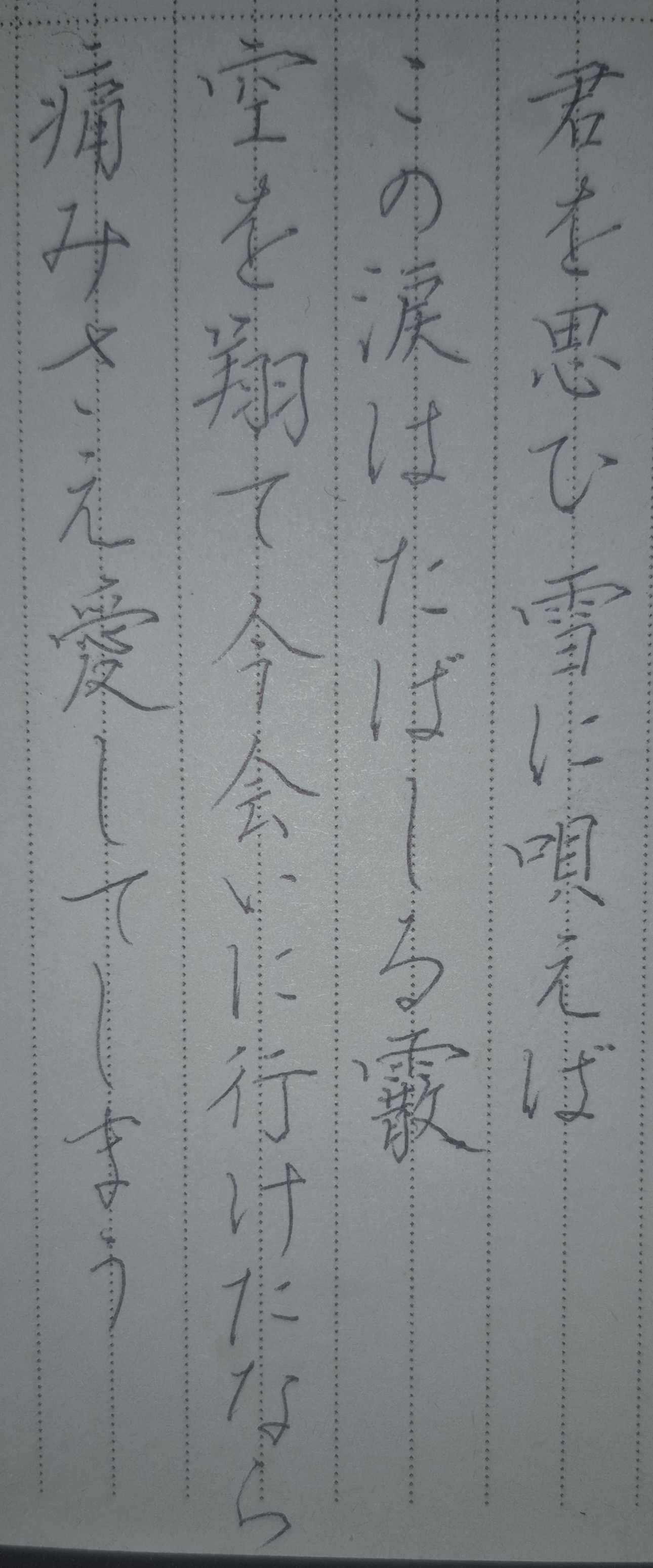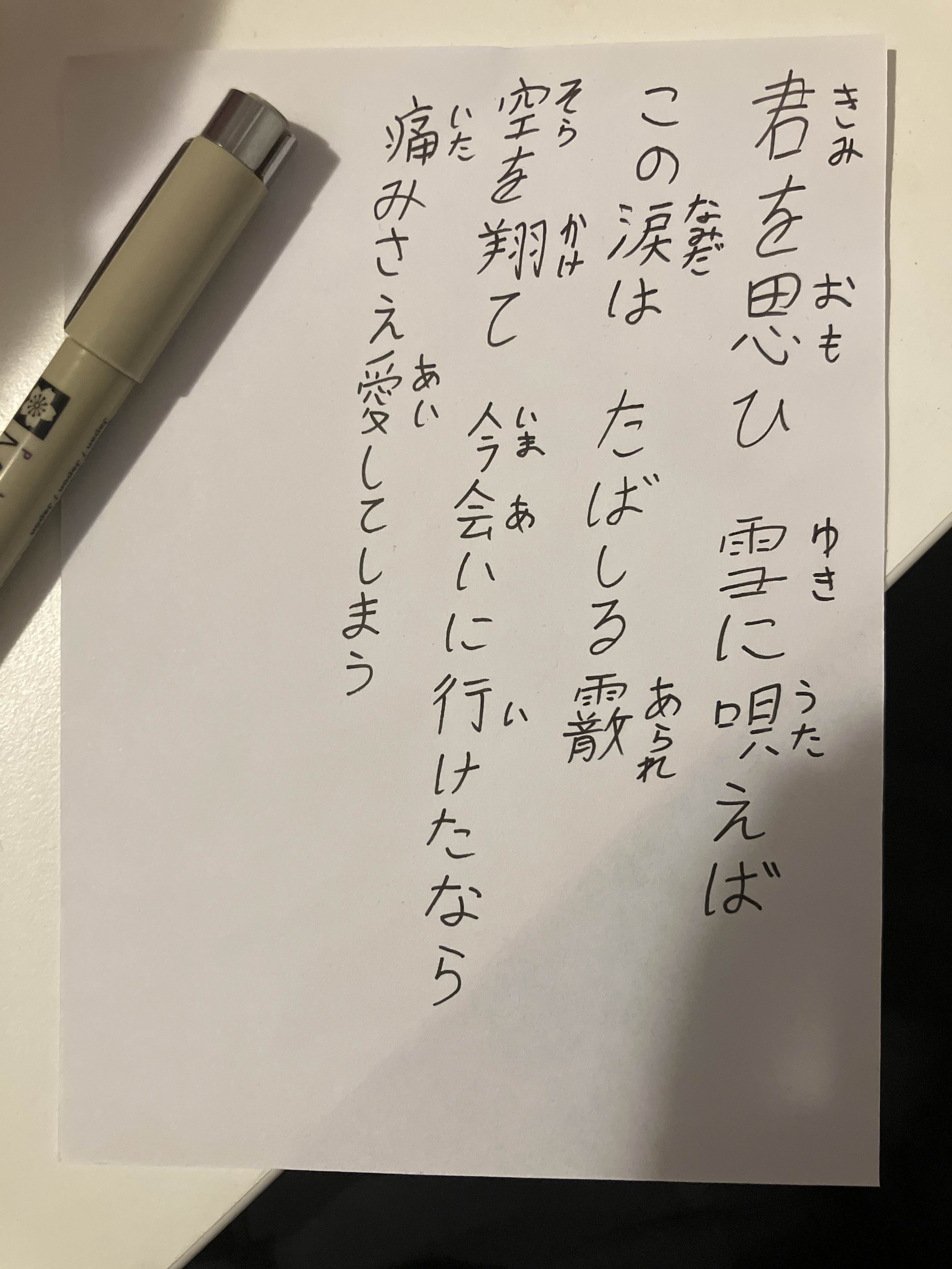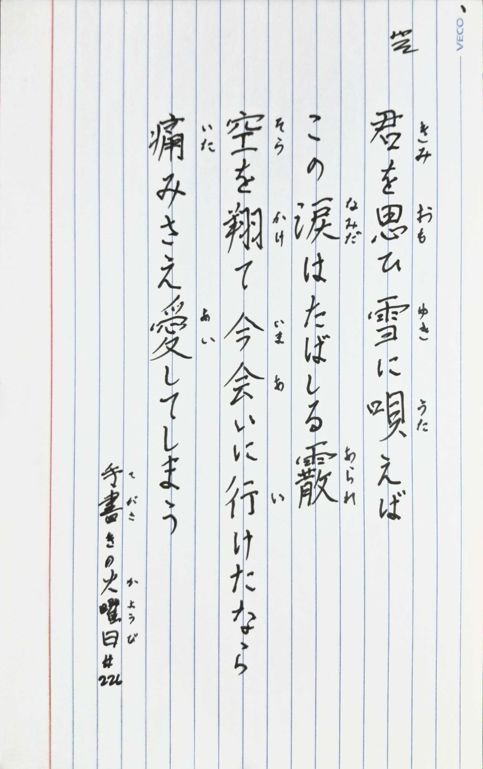 This week's challenge is from the lyrics of 雪唄 (YouTube):