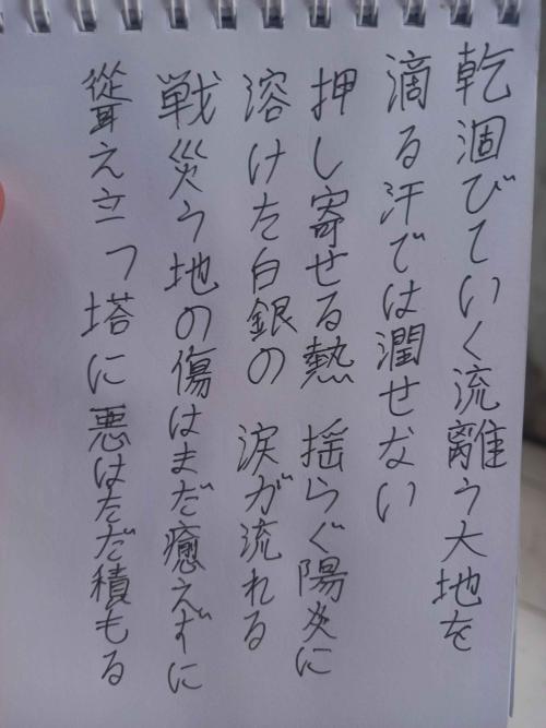 戦(いくさ)災(わざわ)う地(ち)の傷(きず)はまだ癒(い)えずに